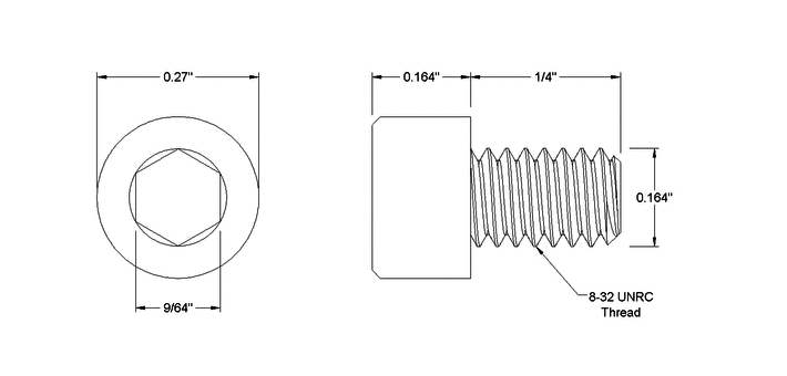 A2 Socket Head Screw 8-32 Thread Size, 1/4" Long