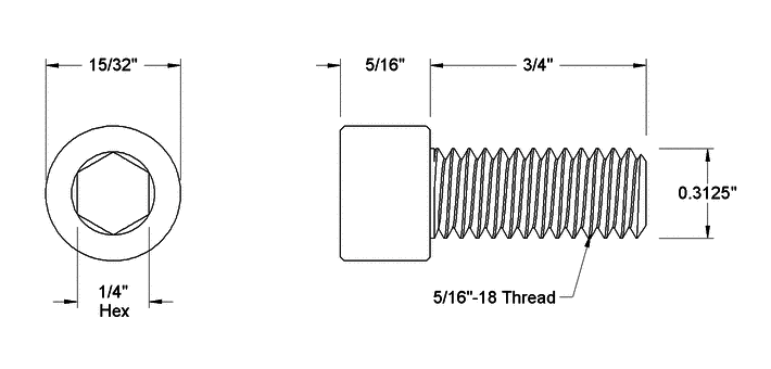 Left-Hand Thread sizeed High Strenght Socket Head Screw 5/16"-18 Thread Size, 3/4" Long