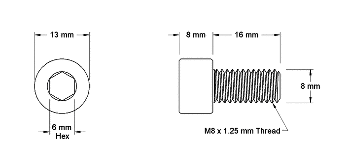 Left-Hand Thread sizeed High Strenght Socket Head Screw M8 x 1.25 mm Thread size, 16 mm Long