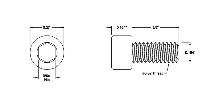 Left-Hand Thread sizeed A2 Socket Head Screw 8-32 Thread Size, 3/8